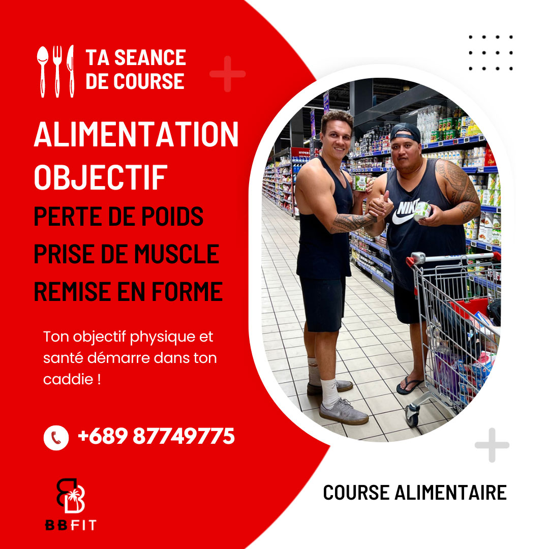 Nous optimiserons tes résultats grâce aux compléments alimentaires. Pendant une heure dans un magasin spécialisé, Fitnessboutique Papeete, je t'expliquerai comment intégrer les compléments pour améliorer tes résultats et les utiliser dans les bonnes quantités. Tu seras capable de te complémenter en fonction de tes objectifs sportifs et santé. Tu pourras également identifier les marques de qualités grâce à mes indications.